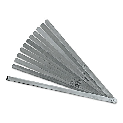 12 Blade Long Feeler Gauge Set, 0.0015 in to 0.020 in Thickness, Inch/Metric, 1/2 in x 12 in