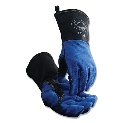 1506 Cow Split Fleece Lined MIG/Stick Welding Gloves, Large, Blue/Graphite, 4 in Gauntlet Cuff