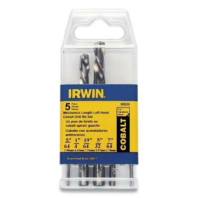 5-Piece Left Hand Drill Bit Sets, M-42 Cobalt High-Speed Steel, 5/64 in to 19/64 in Cutting Diam