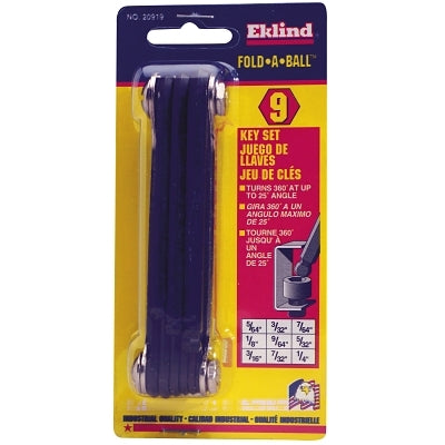 Ball-End Fold-Up Key Sets, 9 per fold-up, Hex Ball Tip, Inch