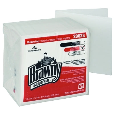 Brawny Industrial Medium Duty All Purpose DRC Wiper, White, 13 in x 12.5 in, 1/4 Fold, 65 per Pack