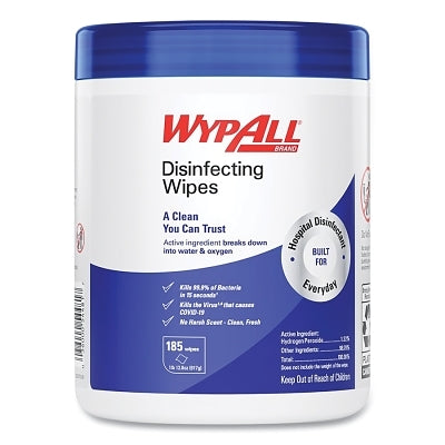 Disinfecting Wipe, White, 5.16 in W, 8.5 in L, 185 Wipes, Canister, 1 Ply
