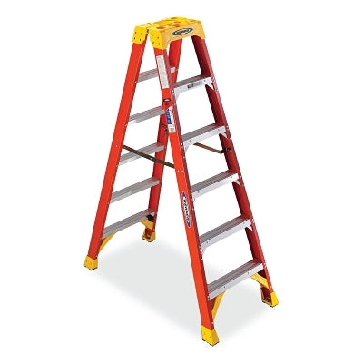 Fiberglass Twin Stepladder, T6206, Type IA, 6 ft L, 10 ft Reach, 23.4 in W, 300 lb Load Capacity Per Side, Orange