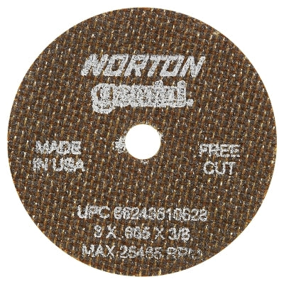Gemini Type 1 Reinforced Cut-Off Wheel, 3 in dia, 0.035 in Thick, 3/8 Arbor, 60 Grit, Aluminum Oxide
