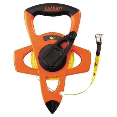 Hi-Viz Orange Reel Fiberglass Tape, 1/2 in x 50 ft, SAE, Orange, 1/10 in Grad