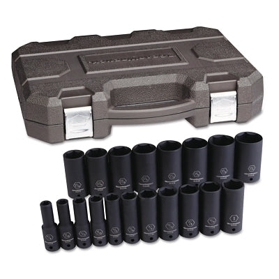 Impact Socket Set, 1/2 in Dr, 6-point, SAE, 3/8 in to 1-1/2 in, 19-Pc Deep Length, Incl Blow Mold Case