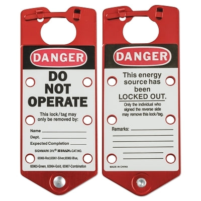Labeled Lockout Hasps, 0.3125 in Dia Shackle, 3w x 0.157d x 7.512h, Red