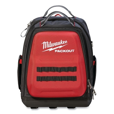 PACKOUT Backpack, 1680D Ballistic Material, 48 Pockets, Black/Red, Includes Jab Saw Pkt/Sternum Strap/Tape Measure Clip