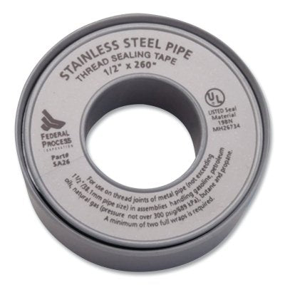 PTFE Thread Tape, 260 in L, 1/2 in W, 4.3 mil, High Density, Silver