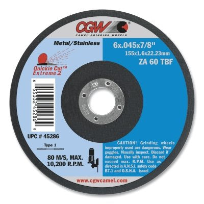 Quickie Cut Flat Cut-Off Wheel, 4-1/2 in dia, .045 in Thick, 7/8 in Arbor, 60 Grit, Type 27