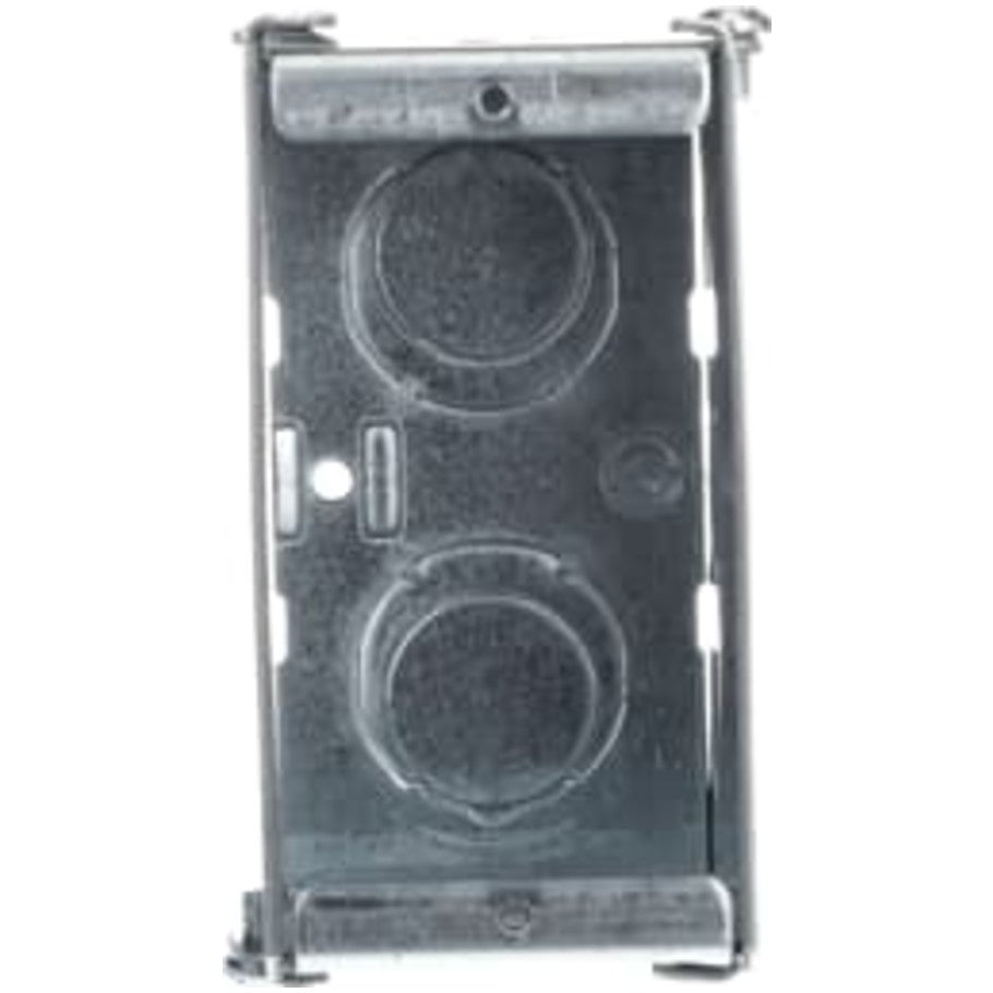Steel 2-1/2 in. deep 1-gang masonry box includes (8) 1/2 3/4 in. eccentric side knockouts and (2) 1/2 3/4 in. eccentric bottom knockouts.