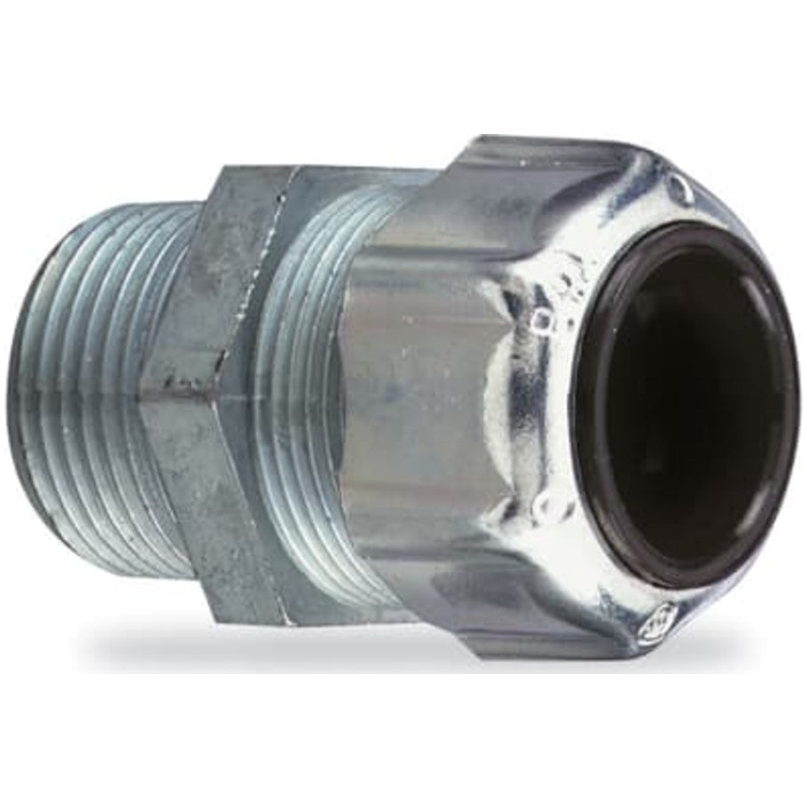 Cord connector connects 0.250 to 0.375 inch cable to 3/4 inch conduit hub. Straight cord connector is liquidtight and has strain relief. Cord connector is malleable iron.