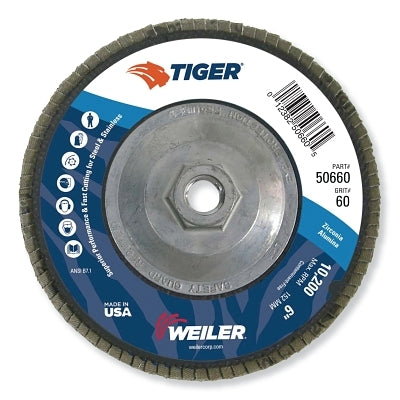 Tiger Disc Abrasive Flap Disc, 6 in dia, 60 Grit, 5/8 in-11, 10200 rpm, Type 29
