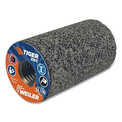 Tiger Grinding Plug, 1-1/2 in dia x 2-1/2 in Thick x 5/8 in-11 Arbor, 20 Grit, Zirconia Alumina, Type 18, 12 EA/BX