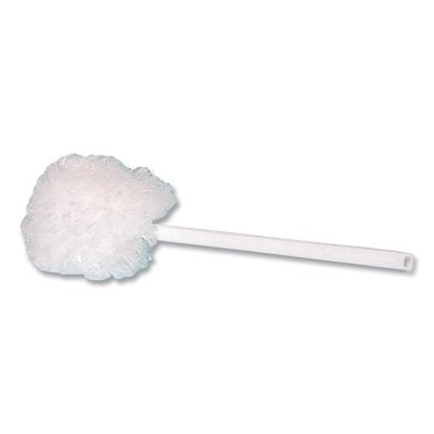 - Fluffy white acid-resistant yarn is firmly attached to a 12" plastic handle with hang up hole